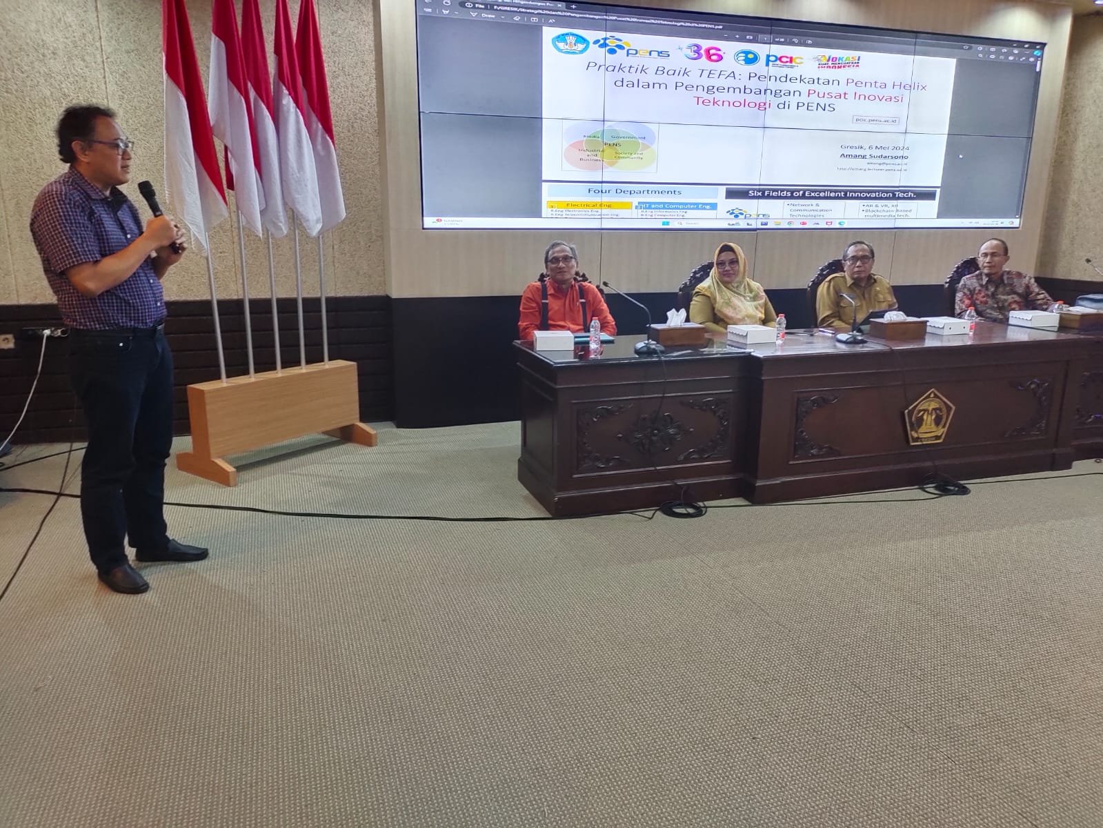 KADIN Jawa Timur dan Konsorsium Perguruan Tinggi Vokasi (PTV) Jawa Timur bekerjasama dengan Pemerintah Kabupaten Gresik, Rumah Vokasi Gresik TKDV Gresik dan pengelola Kawasan Ekonomi Khusus (KEK) Java Integrated Industry & Ports Estate (JIIPE) mengadakan kegiatan bersama dalam bentuk Pertemuan “Inisiasi Teaching Factory (TeFa) Kawasan Ekonomi Khusus (KEK) Java Integrated Industrial and Ports Estate (JIIPE)” pada 6 Mei 2024. Kegiatan yang telah dilaksanakan menyatukan konsep antara KADIN, Pemerintah Kabupaten Gresik, PTV, dan juga perusahaan di Gresik khususnya KEK dan JIIPE terkait dengan pembahasan kurikulum pendidikan vokasi untuk kebutuhan lapangan kerja. Kegiatan ini juga membahas tentang apa saja kebutuhan lapangan yang dibutuhkan oleh perusahaan yang nantinya akan disesuaikan dengan pola pengajaran di Perguruan Tinggi Vokasi (PTV).